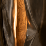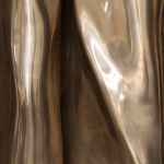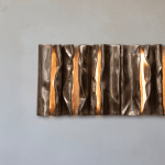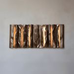 This is a sculptural wall-mounted light fixture that bridges the gap between functional lighting and fine art. It features a series of vertical, undulating panels that mimic the organic flow of rippling water, draped fabric, or tree bark. The piece embodies organic modernism with a touch of Brutalist influence. It balances the hardness of the metallic aesthetic with the softness of the fluid, wave-like shapes, making it a statement piece intended to add texture and warmth to an interior space.